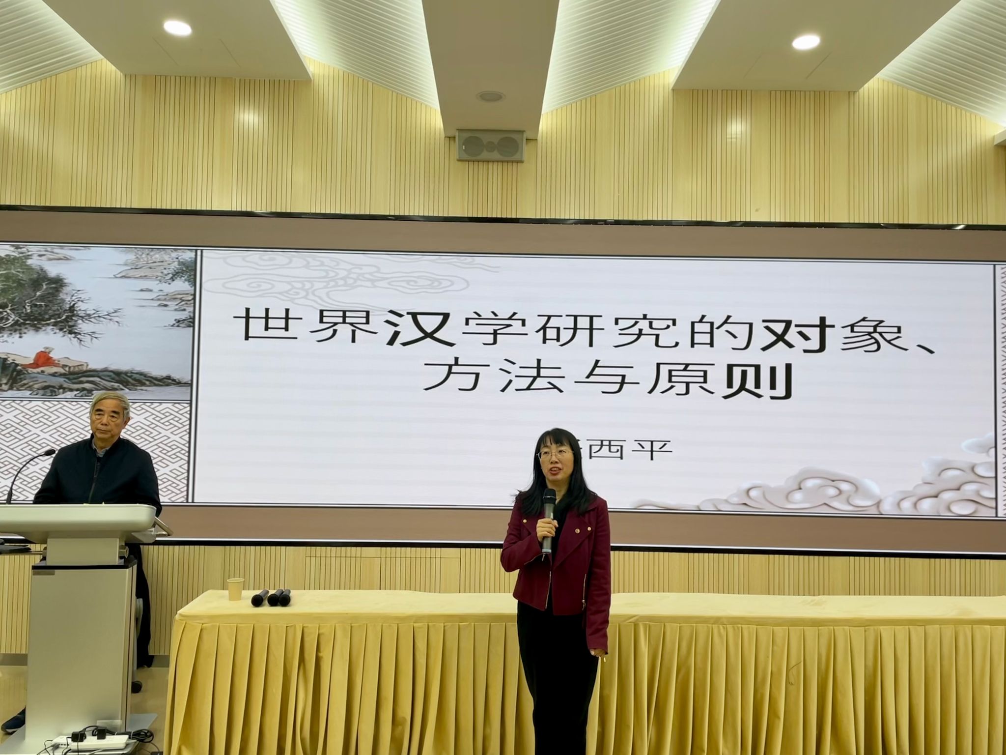 特聘教授、汉学与中国学学院荣誉院长张西平教授,主讲题目为《世界汉学研究的对象、方法与原则》。汉学与中国学学院主持工作副院长李萍教授主持了讲座,校内外众多师生出席讲座并积极参与互动。