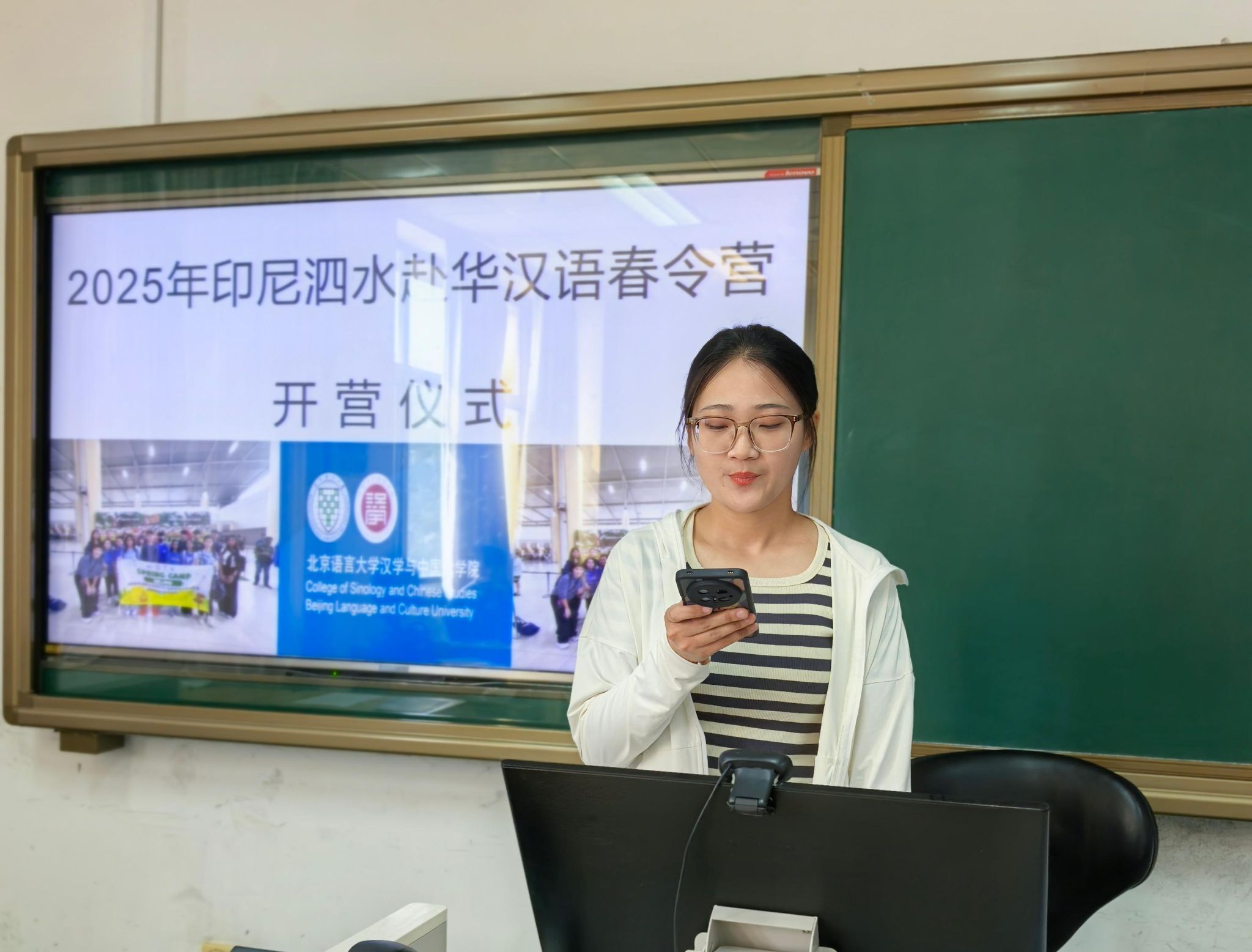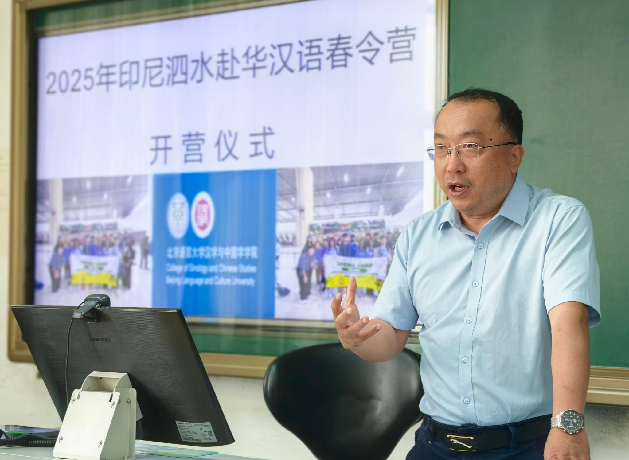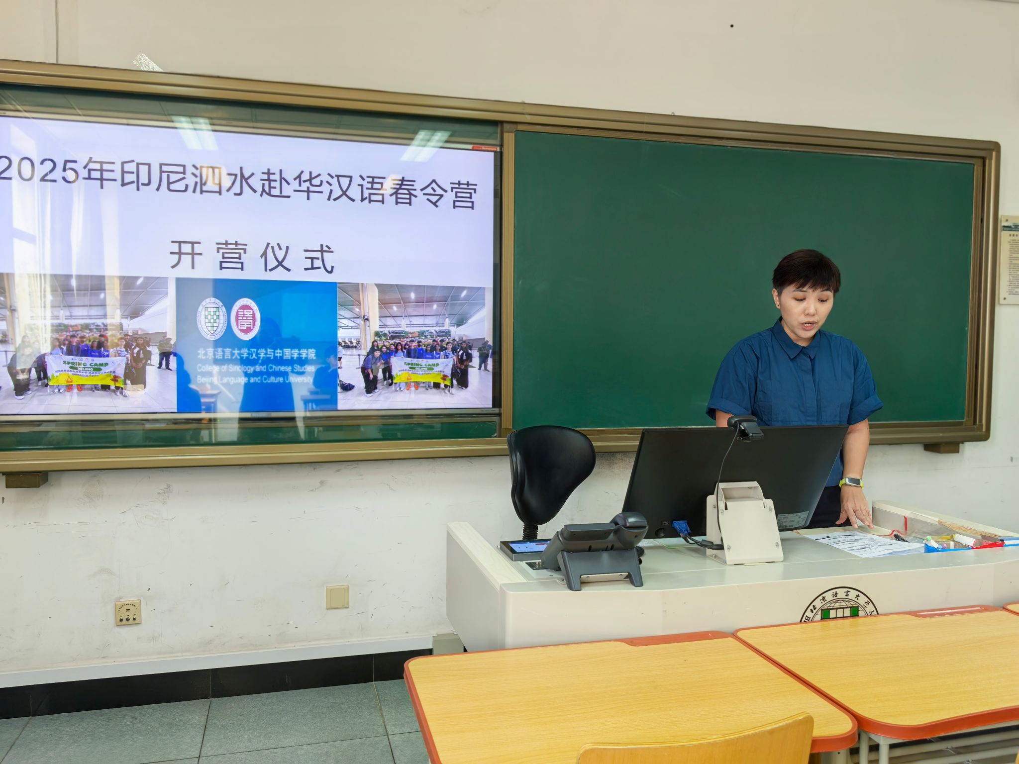 2025年“印度尼西亚泗水赴华汉语春令营”开营仪式在教一楼606顺利举行。汉学与中国学学院党委书记马铁石、对外合作与交流办公室主任杨楠、印度尼西亚赴华汉语春令营领队梁姝绚女士、Nation Star Academy(以下简称“NSA”)初中部校长Inggriette Liany Widyasari女士、春令营学生辅导员冯逸然、春令营教师代表张子怡,以及来自印尼泗水NSA的15名学生出席了开营仪式。仪式由汉学与中国学学院对外合作与交流办公室副主任王术昌主持。