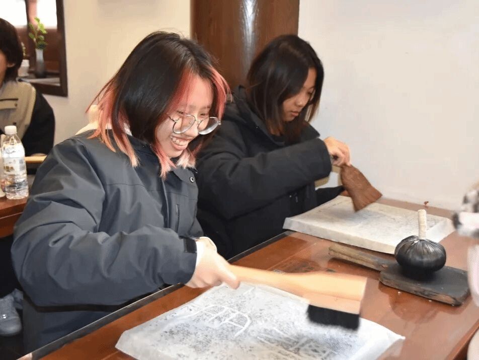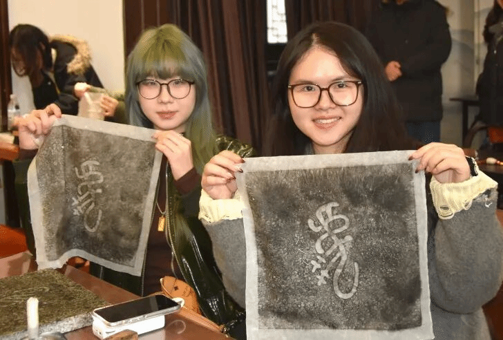 泰山拓片作为一项重要的非物质文化遗产,承载着泰山深厚的历史文化底蕴。它不仅是传统技艺的体现,也是文化传播的重要载体。在岱庙“信道堂”中,通过老师的讲解、技艺演示、实操制作,同学们不仅学习了泰山拓片的历史渊源与文化关联,更有机会亲手感受传统非遗技艺的趣味。当欣喜地展示着自己完成的拓片作品时,同学们才真正从这样一次“以技载文、以文传情”的文化体验,更加深刻地领略到传统手工艺的无穷匠心。