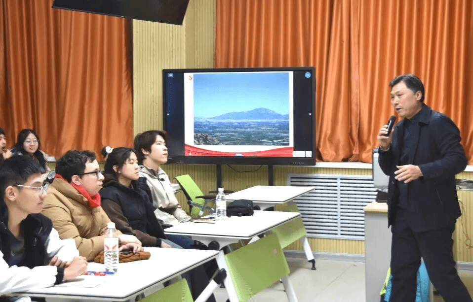 随后,实践调研团全体师生前往泰山学院历史学院,参加了“读泰山——文化长卷,历史石书”文化交流会。会上,泰山学院历史学院党委副书记、院长聂立申向大家讲述了泰山作为“中华第一山”的历史渊源、作为中华民族精神家园的文化背景、作为国家兴盛象征坐拥“泰山安,四海皆安”的底蕴气魄、作为体现“天人合一”思想洞天福地的哲学内涵······在聂院长的讲解中,同学们对泰山的历史文化、自然风光、地质奇观产生了更浓厚的兴趣,对接下来将亲自走进泰山,开启一段历史、文化、美学之旅满怀期待。