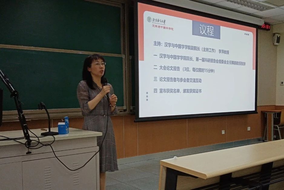 教一楼601教室举行。校长助理、研究生院院长、汉学与中国学学院院长郭鹏教授、副院长(主持工作)李萍教授及学院全体教师参加了报告会,报告会由李萍副院长主持。
